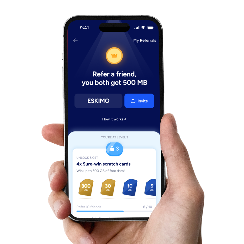 Connect to top local carriers on 4G and 5G, with the same fast, reliable network used by Eskimo’s paid eSIM plans.
